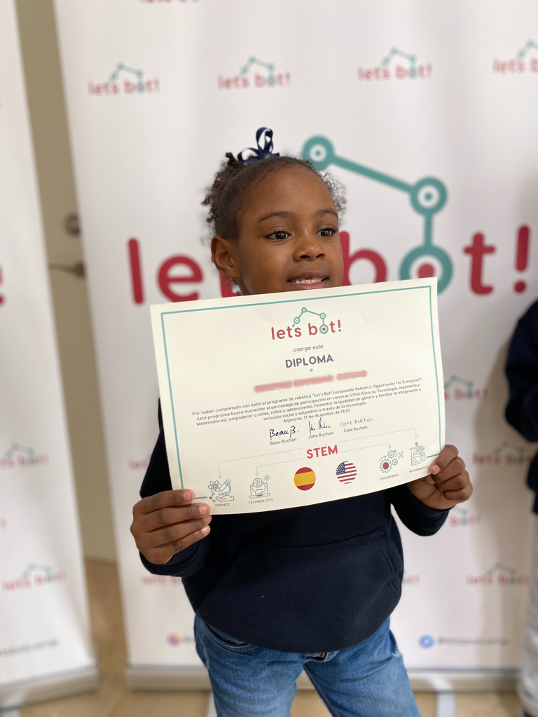 Los talleres prácticos no solo les enseñaron nuevas habilidades, despertando su interés por la tecnología, sino que también les ofrecieron un espacio de comunidad y aprendizaje, convirtiéndose en una herramienta poderosa para el empoderamiento, la inclusión y el desarrollo personal. Con la temporada navideña como telón de fondo, ¡Let’s Bot! Algeciras combinó diversión, aprendizaje y esperanza. Fue un recordatorio del potencial humano para crecer y encontrar la alegría incluso en circunstancias difíciles.